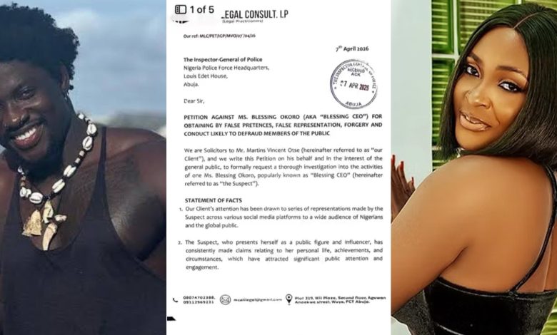 A petition has reportedly been submitted to the Inspector-General of Police against Nigerian relationship expert Blessing CEO, alleging false representation, forgery, and conduct likely to defraud members of the public.