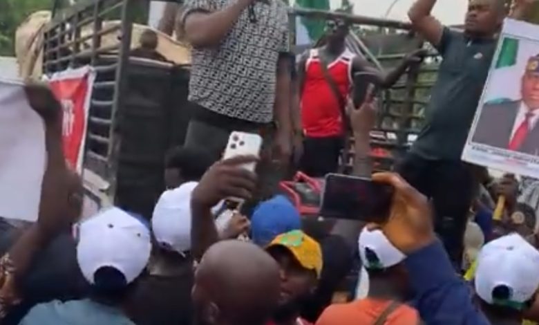 Melaye joined the protesters major made up of members of the Obidient Movement and the Kwankwasiyya Movement at the Unity Fountain in Maitama district of Abuja.