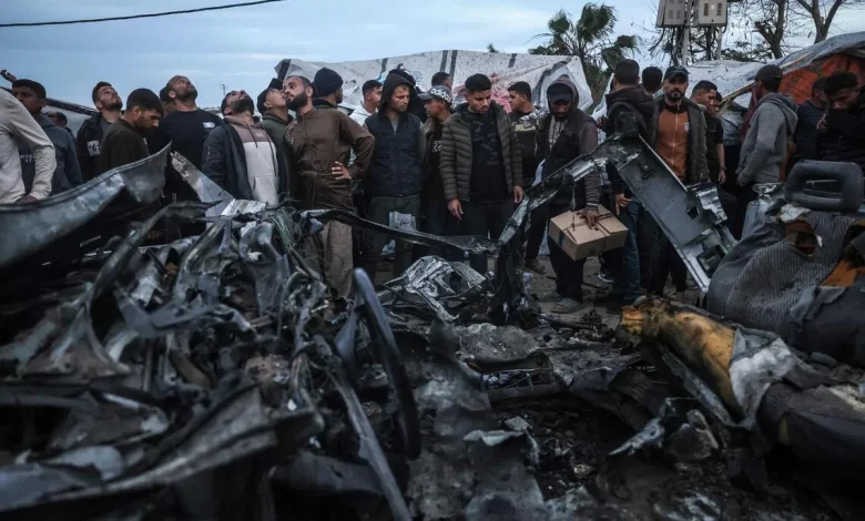 In Khan Yunis, an AFP photographer saw dozens of onlookers gathered around the skeleton of a burnt-out car on a dirt road in the middle of a tent camp.