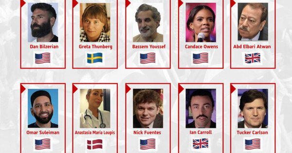 Six of the ten “influencers” are based in the US, including American conservative journalist Tucker Carlson, far-right activist Nick Fuentes, and commentator Candace Owens. Swedish environmental activist Greta Thunberg, who became a vocal supporter of the Palestinian cause in recent years, earned the number two spot, while US influencer Dan Bilzarian took the top spot.