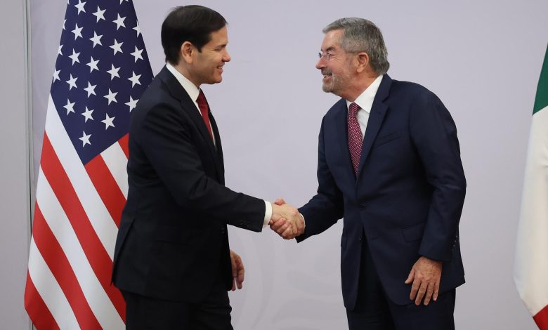 U.S. Secretary of State Marco Rubio, left, and Juan Ramón de la Fuente, then Mexico’s foreign secretary, meet during a news conference in Mexico City in 2025.