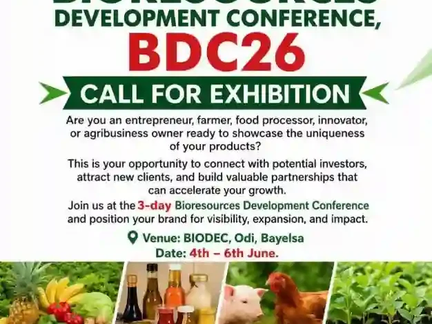 “Applications are now open for exhibitors at the Bioresources Development Conference (BDC26). This is a viable platform for entrepreneurs, agribusiness owners, and innovators to connect with investors, expand market reach, and explore growth opportunities,” the agency stated.