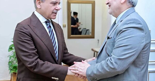 (260422) — ISLAMABAD, April 22, 2026 (Xinhua) — Pakistani Prime Minister Shehbaz Sharif (L) holds talks with Iranian Ambassador Reza Amiri Moghadam in Islamabad, Pakistan, April 22, 2026.
