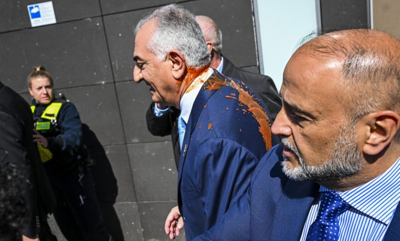 Red liquid thrown at Iranian opposition figure Reza Pahlavi during Germany visit