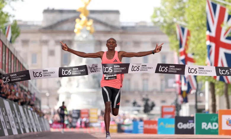 Kenya’s Sabastian Sawe broke the two-hour mark for the first time in history on Sunday in winning the London Marathon.