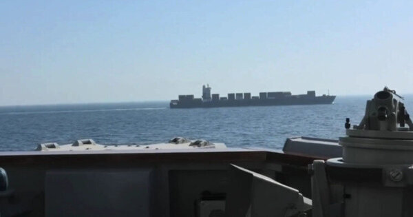 According to CENTCOM, the guided-missile destroyer USS Spruance intercepted the M/V Touska in the Gulf of Oman as it attempted to breach a US-imposed naval blockade and reach the Iranian port of Bandar Abbas via the Strait of Hormuz.